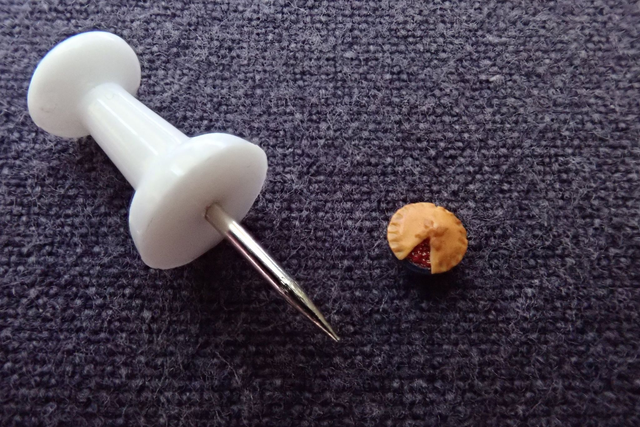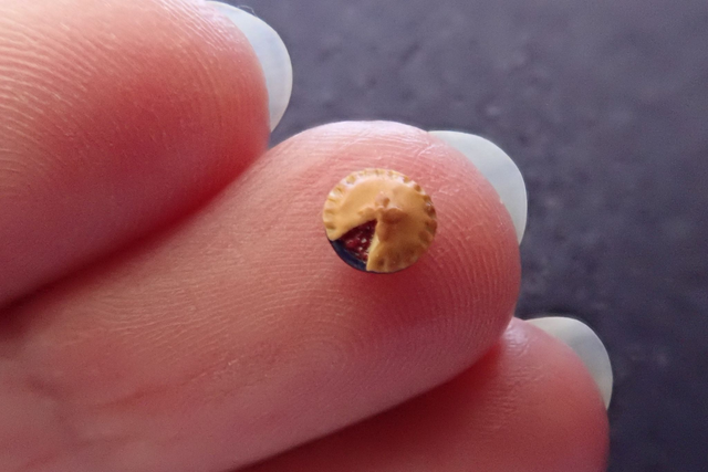 A tiny 1/48th scale pie, sliced to show the cherry filling inside. This item will usually be made to order.