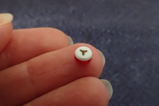 1/48th scale white iced Christmas Cake decorated with holly.